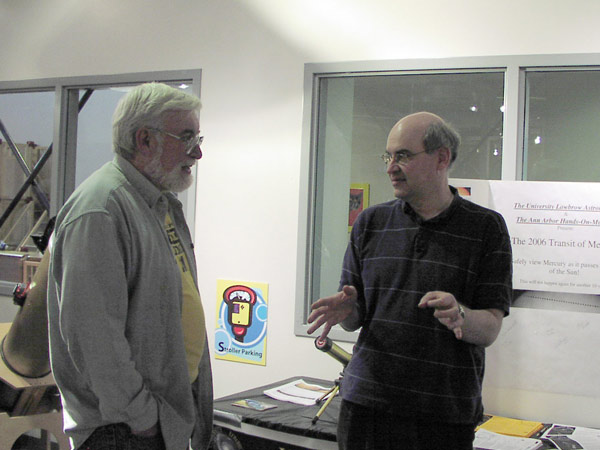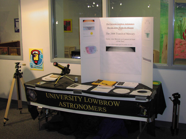 The day of the transit, November 8, 2006, the Lowbrows set up a table at the Ann Arbor Hands-On Museum. Unfortunately it was cloudy, and setting up telescopes outside would have been pointless.