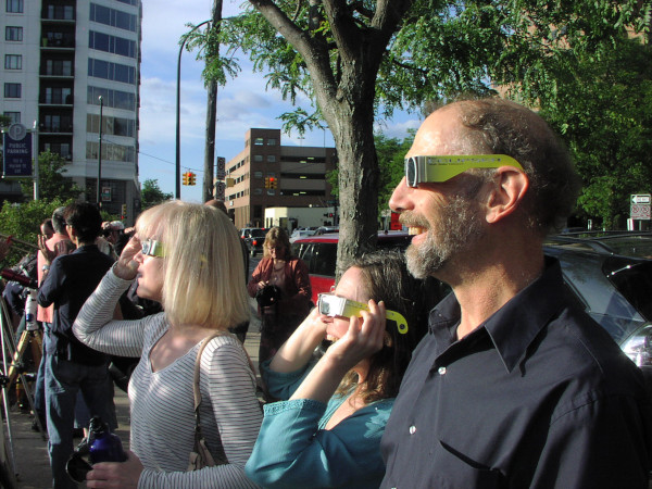 People observing the transit during the afternoon of June 5.