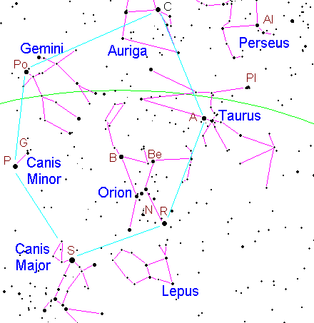 Each landmark can be used to locate other stars and/or constellations. (Note: Orion is a constellation; however the Big Dipper, the Summer Triangle and the Great Square of Pegasus are asterisms. The indicated times are not the only times these landmarks are visible; for example the Big Dipper is circumpolar from most Northern Hemisphere locations, it is visible at all times. However spring evenings and winter mornings are the best time to use the Big Dipper as a landmark.) As you learn the constellations, watch out for asterisms that look similar to constellations; if you are not careful you will find the sky filled with “big dippers” or “great squares.” Try not to go by shape alone.