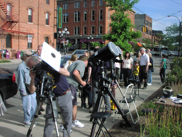 For the 2012 Venus transit, which took place on June 5, 2012, the University Lowbrow Astronomers had set up on South Ashley Street, Ann Arbor, Michigan.