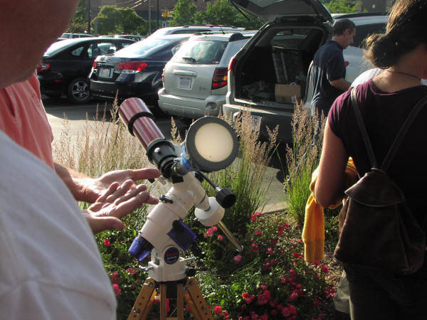 People observing the transit during the afternoon of June 5.