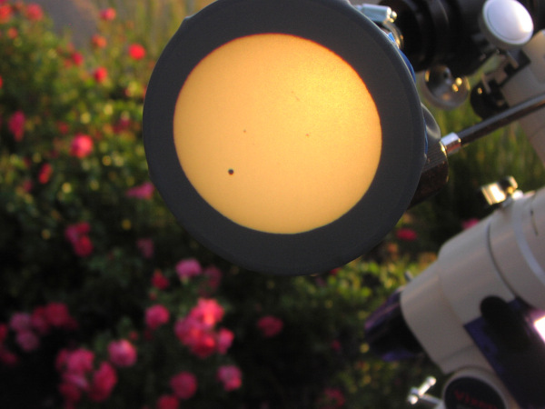 Views of the transit itself. Each of these photos show a black dot (Venus) on the disk of the Sun.