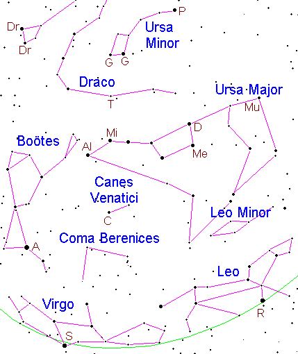 One way to learn constellations is to first learn a few landmarks. The best landmarks vary depending on time of night and the season, in the Northern Hemisphere the following are good choices: